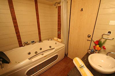 * Cottage Rooms with attached Jacuzzi and open Rain Shower and Sitout.